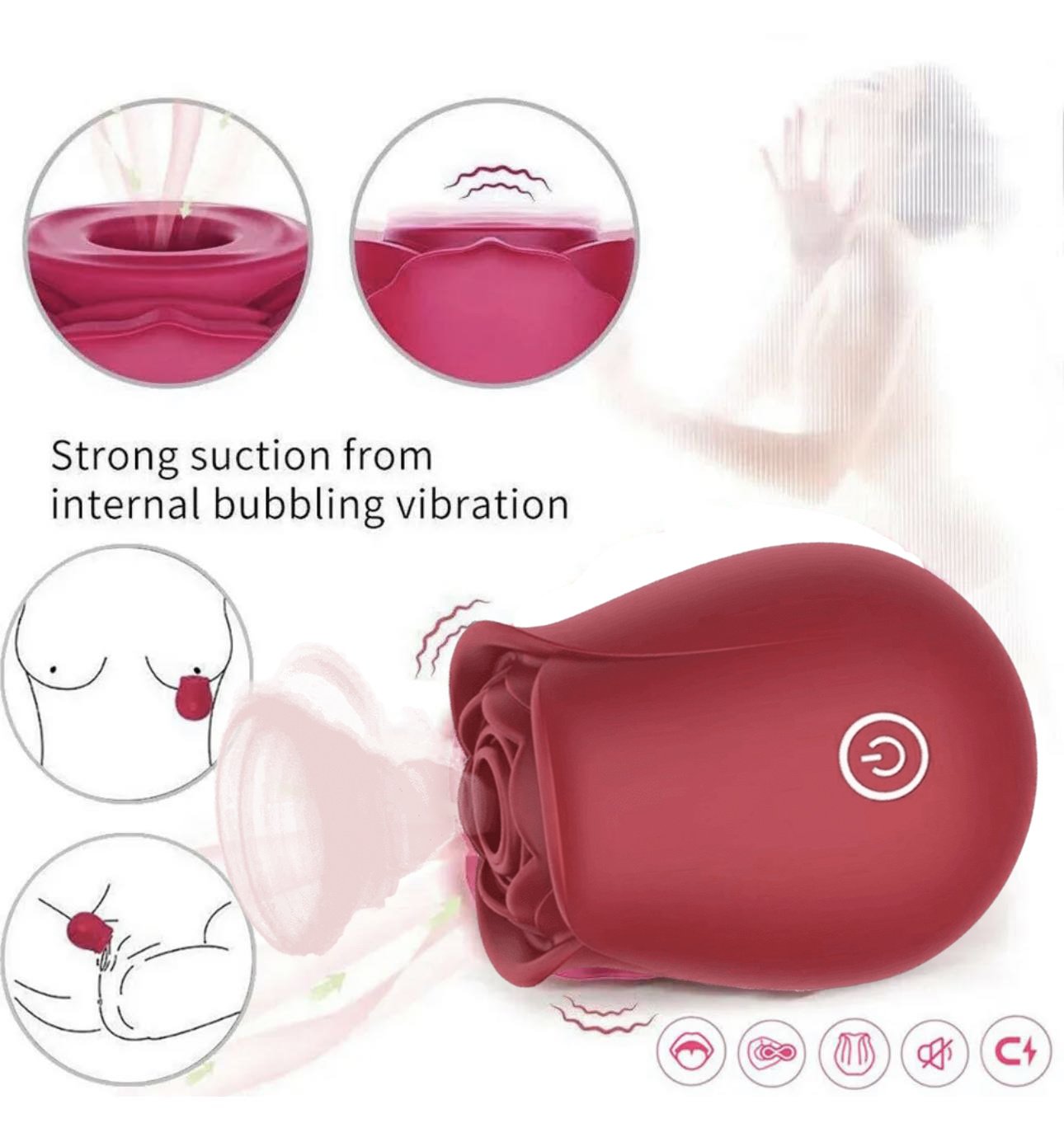 [Innovative Pulsating Rose Toy]-Different from other rose sex toys which directly hit on clit or nipple, this adult toy adopts a brand new pulsating technique. Totally sealed inner loop air raises up the adult sex toys’ surface to flap on your sweet points. Pulsation vibrates and flaps on the position of the anus’s little circular opening, over or around clitorises, and nipples, taking truly a growing numb pleasure you never had before. A simple button controls all.