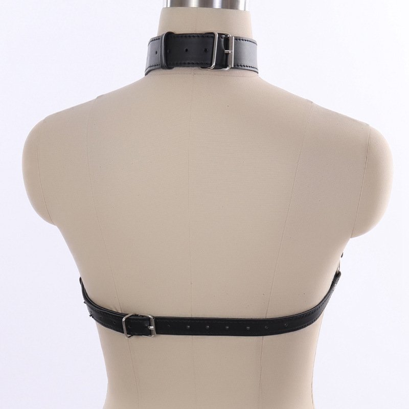 Home > Women Bondage Body Harness Lingerie Goth Crop Tops Leather Bra Cage BDSM Collar Body Harness Belt Chain Slave Breasts Sex Toys